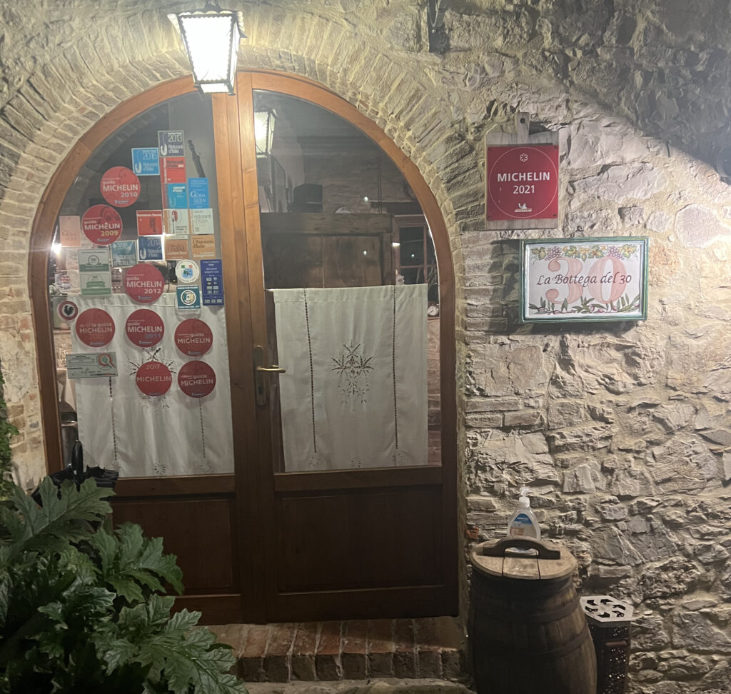Insieme aprono le porte de “La bottega del 30”, osteria che declina la raffinatezza della cucina francese e la coniuga alla straordinaria diversità dei sapori della cucina toscana. Dieci anni dopo, il riconoscimento della guida Michelin, una stella per la qualità nel tempo, una stella mai persa negli anni, senza mai snaturarsi, le sedie di paglia, le pareti in tufo, i cesti di paglia appesi al soffitto.