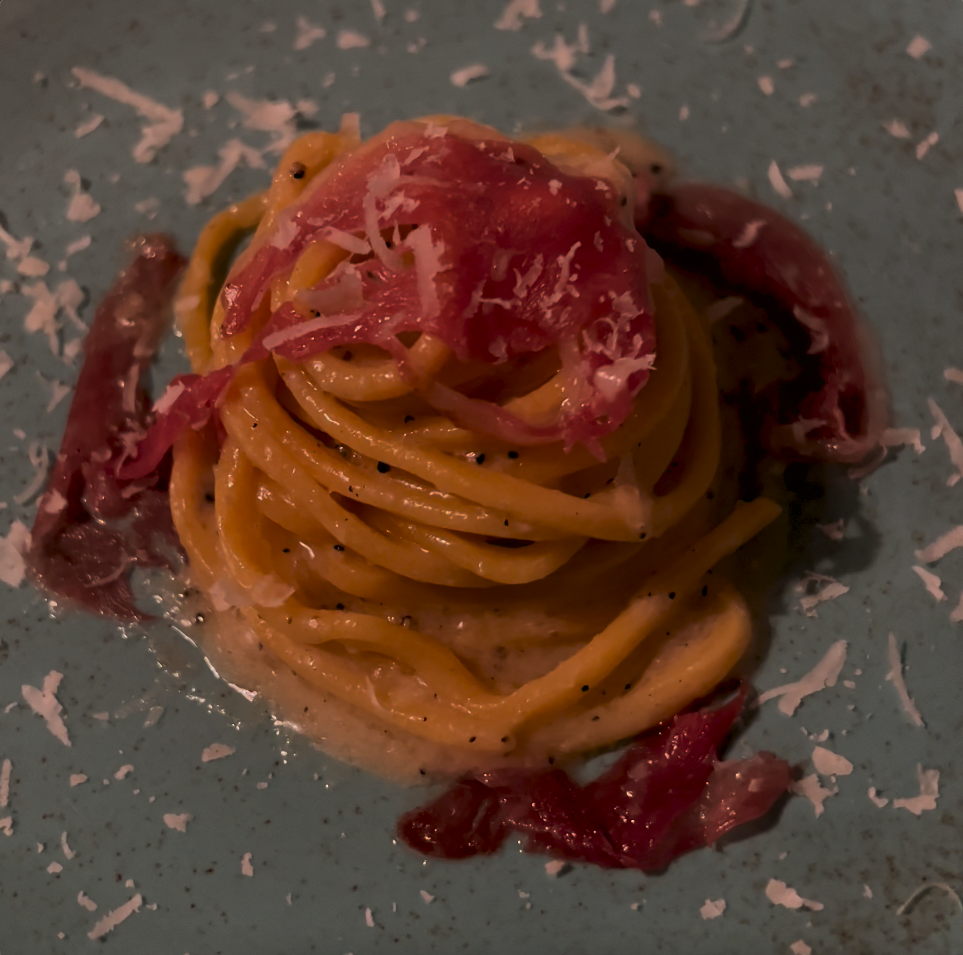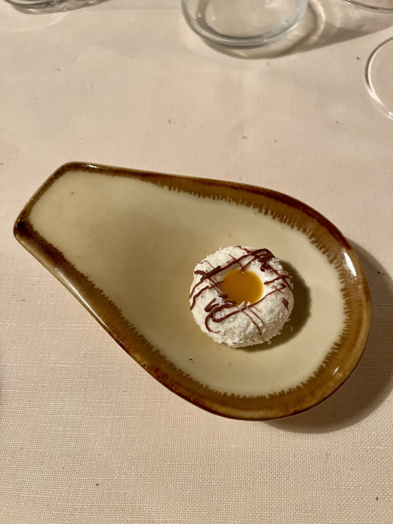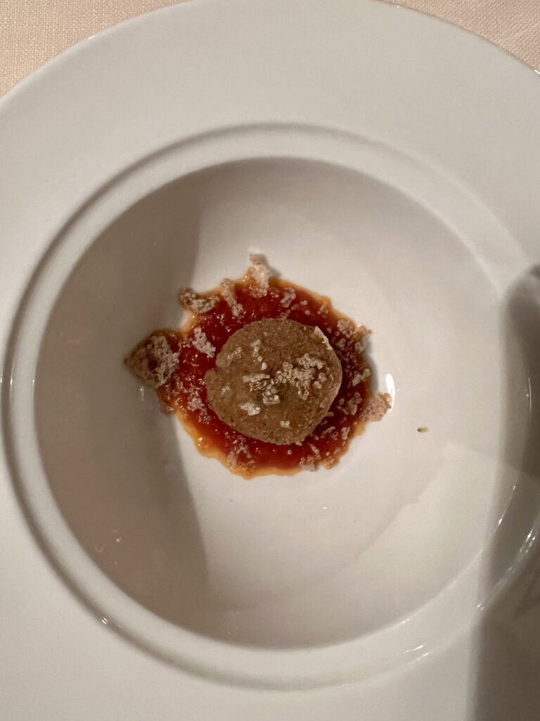 Un menù degustazione da sette portate strepitoso, creato dalla Chef Nadia Mongiat, che Danilo Salvi (il sommelier) ci consiglia di accompagnare con un vino locale, il Pugnitello, prodotto della lavorazione di un antico vitigno, ripreso grazie agli studi dell’Università di Firenze.