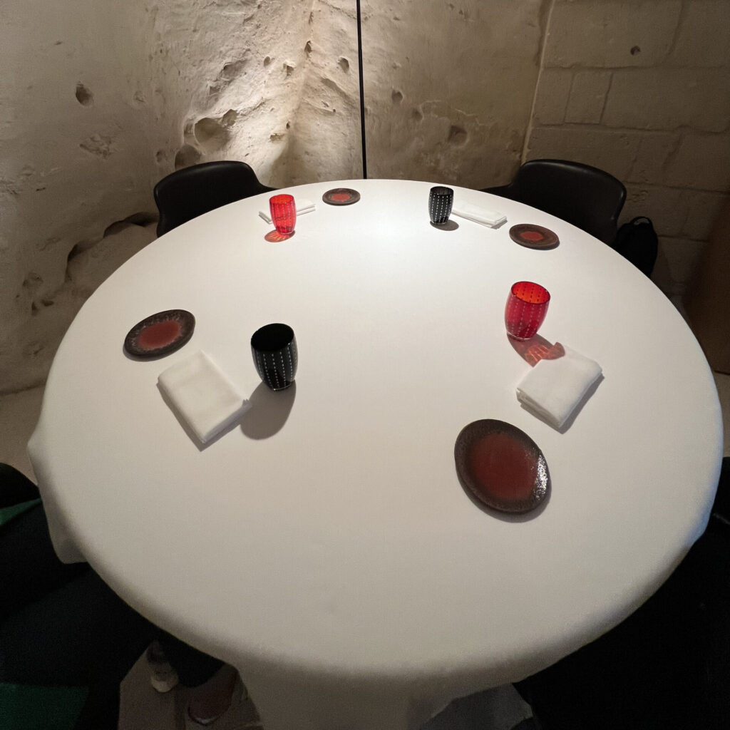 Incastonato in uno dei sassi, la location è a dir poco suggestiva, giusta l’illuminazione e ben studiati gli elementi di arredo. Abbiamo scelto il menù di 6 portate, da scegliere tra le 22 proposte dello Chef che alla tradizione lucana mixano elementi della cucina nazionale, europea fino a raggiungere quella Giapponese. Eccezionale servizio orchestrato dal Maitre Donato Addesso, abbinamento vini sublime che spazia dalle bollicine Francesi fino alla birra artigianale lucana fanno da cornice ad un viaggio tra i sapori straordinario.